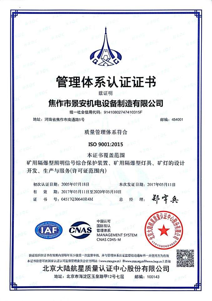 焦作市景安機電設備制造有限公司(原焦作市無線電一廠),是國家重點生產礦用防爆電子電器產品的專業企業,全國煤炭行業機電產品定點生產單位,中國電器工業協會防爆電氣分會理事,市級礦用隔爆型工程技術中心,公司占地30000平方米,廠房10000平方米,ISO9001:2008質量管理體系和A級計量認證企業。
